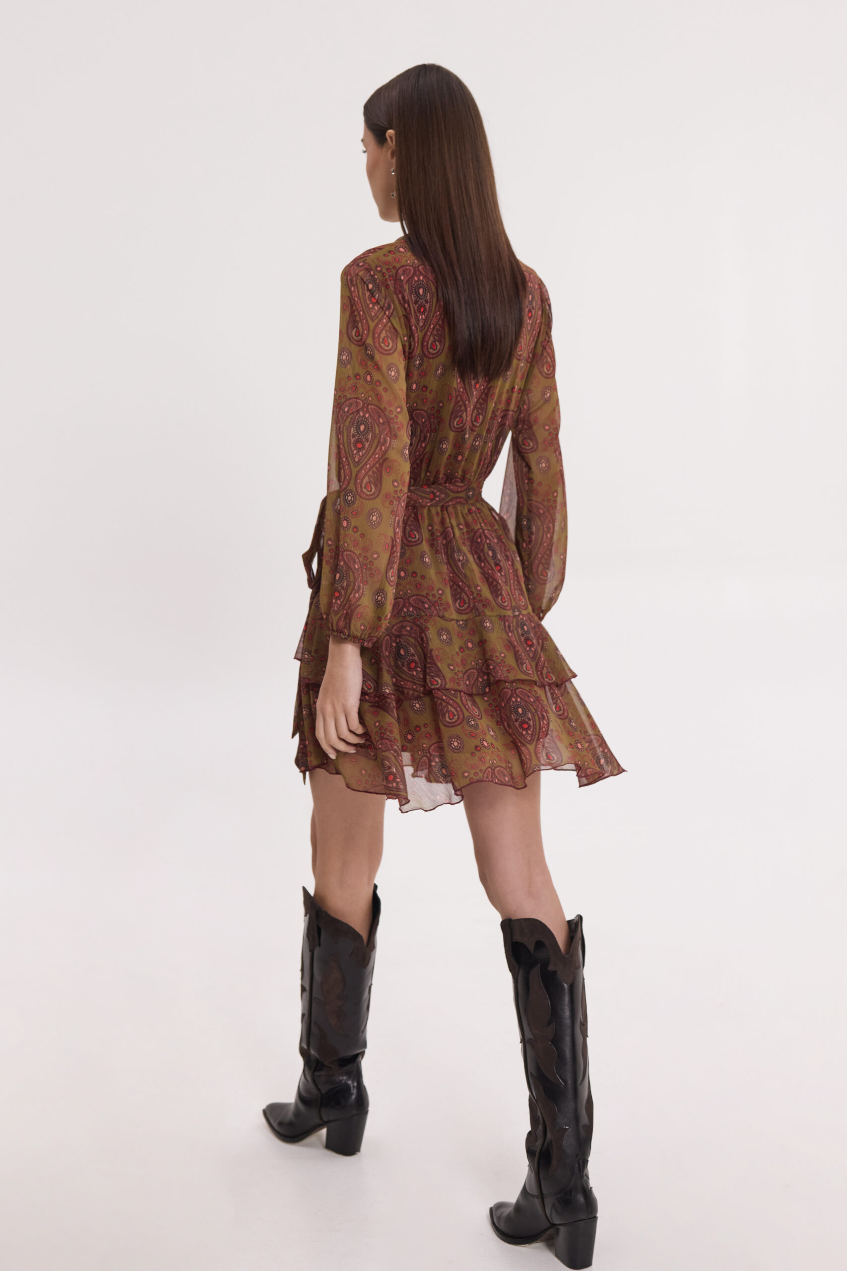 Mini φόρεμα εμπριμέ με βολάν στο μέρος της φούστας