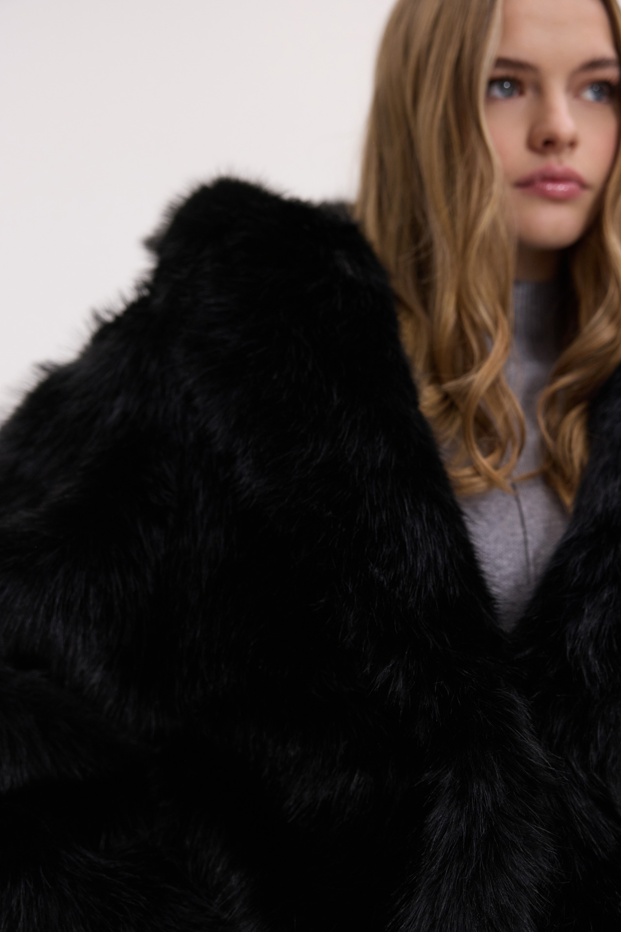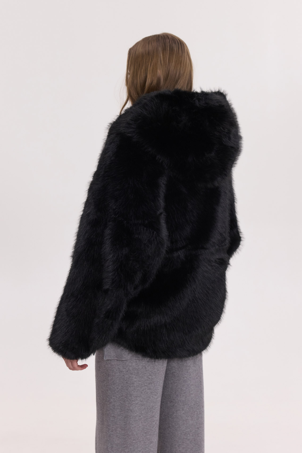 Κοντή γούνα με κουκούλα