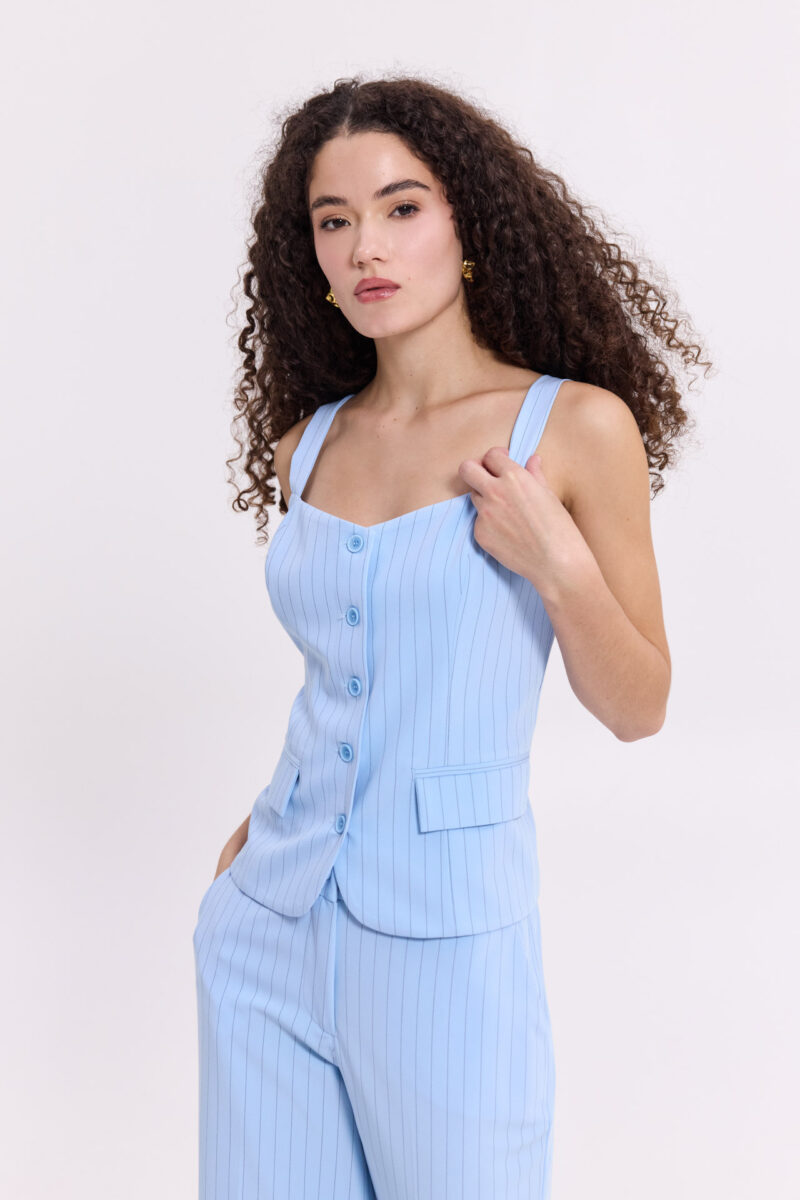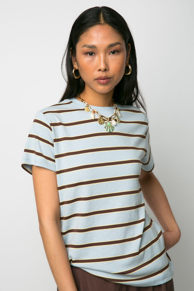 Μπλούζα πλεκτή κοντομάνικη σιέλ