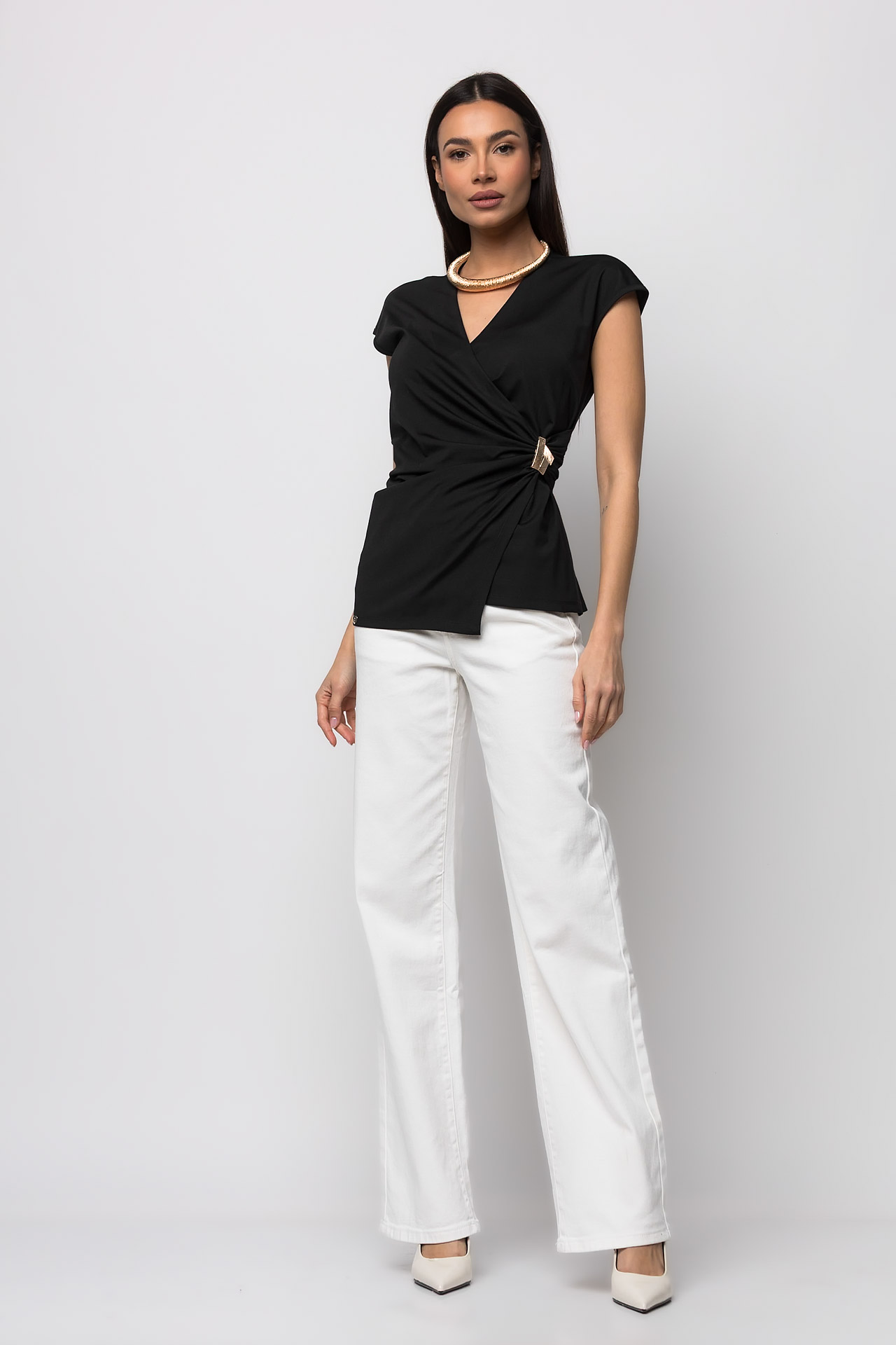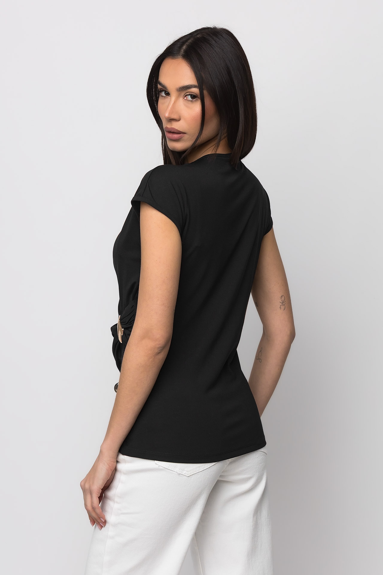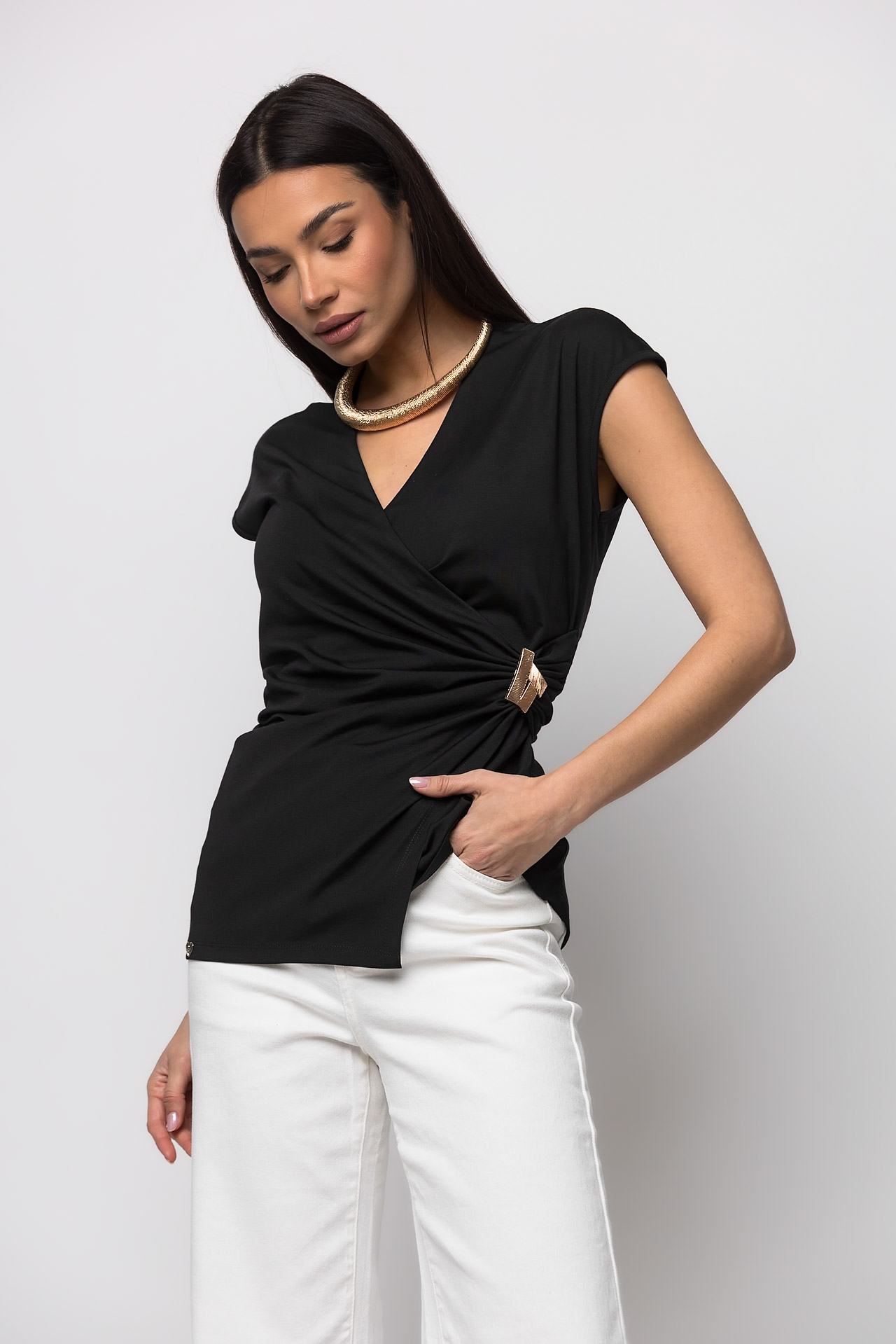 Μπλούζα κρουαζέ με χρυσή αγκράφα μαύρο