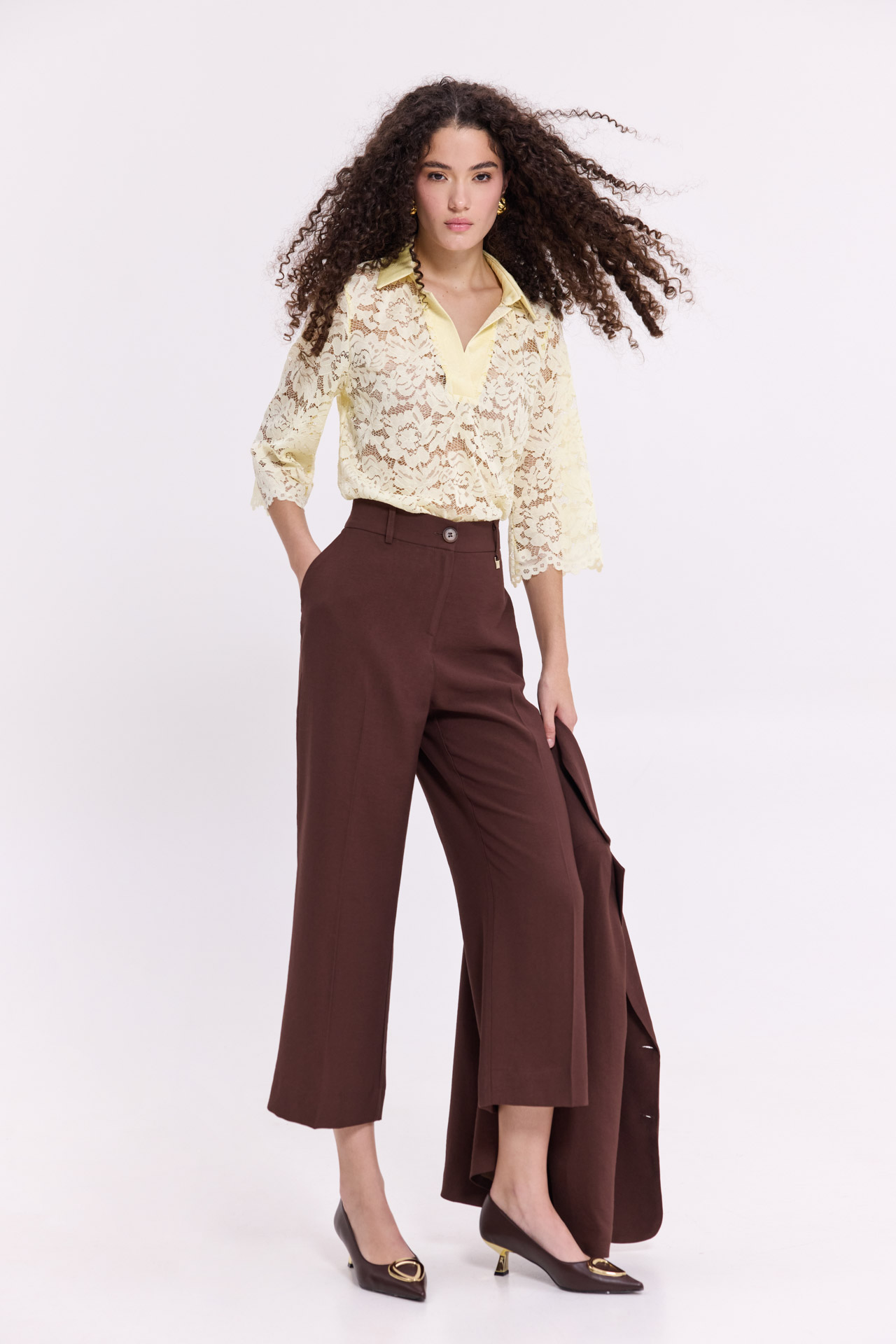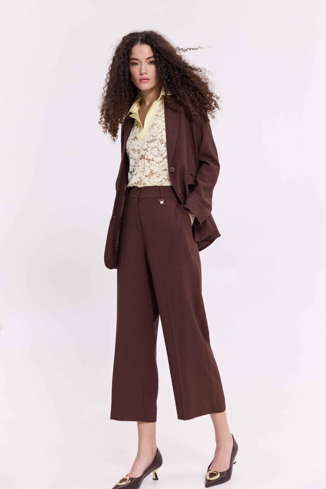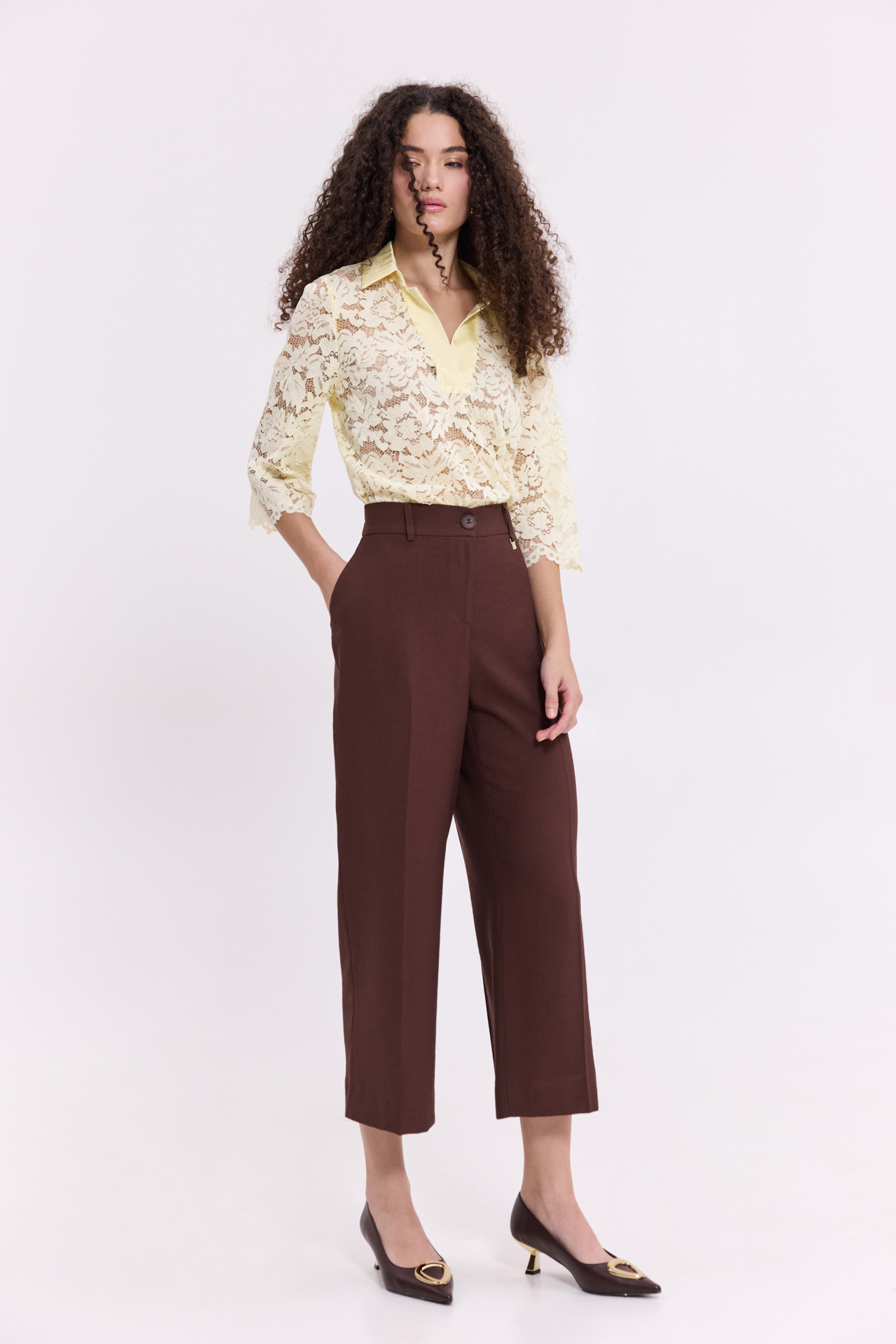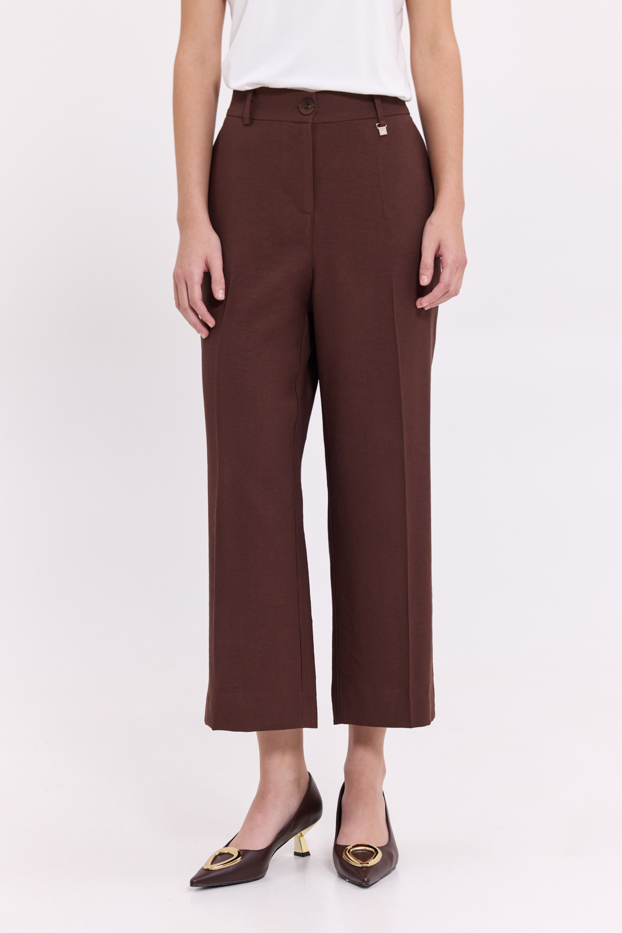 Crop παντελόνι καφέ