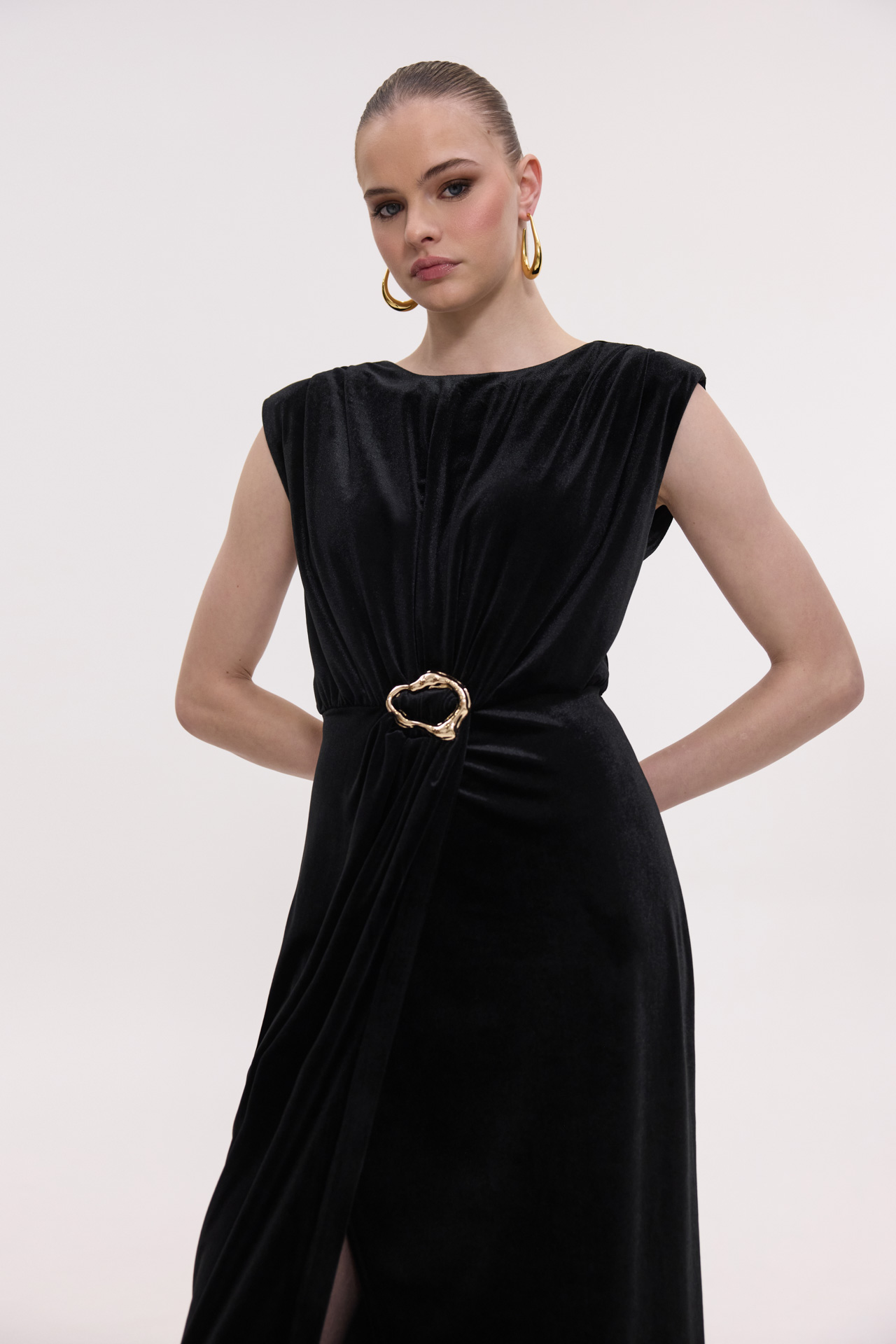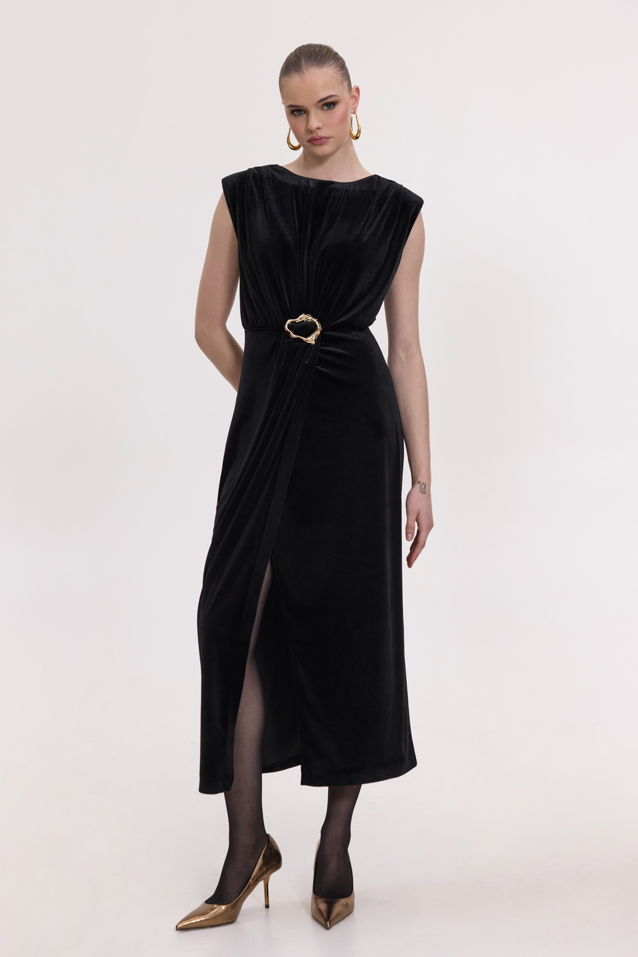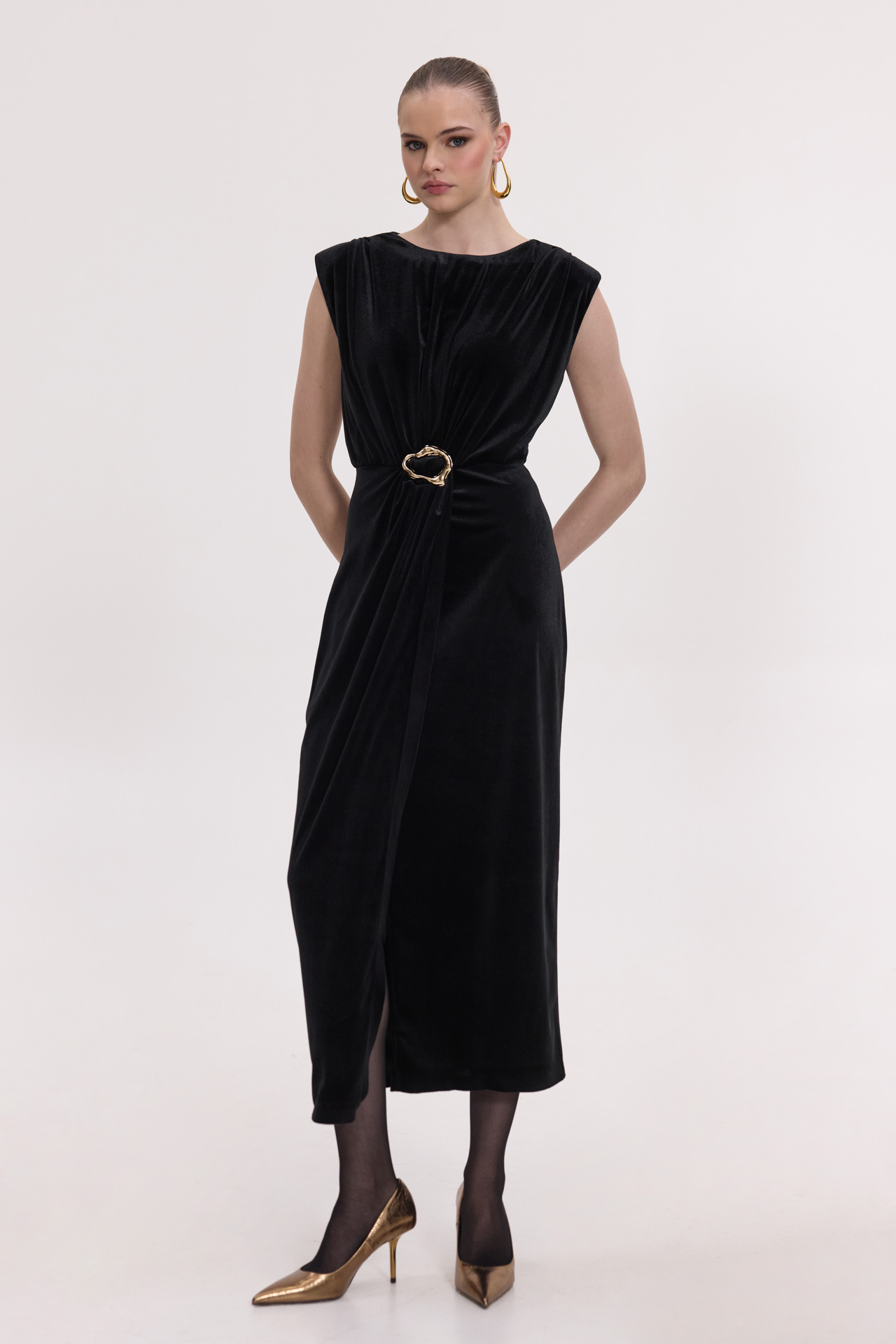 Φόρεμα midi βελούδο με αγκράφα