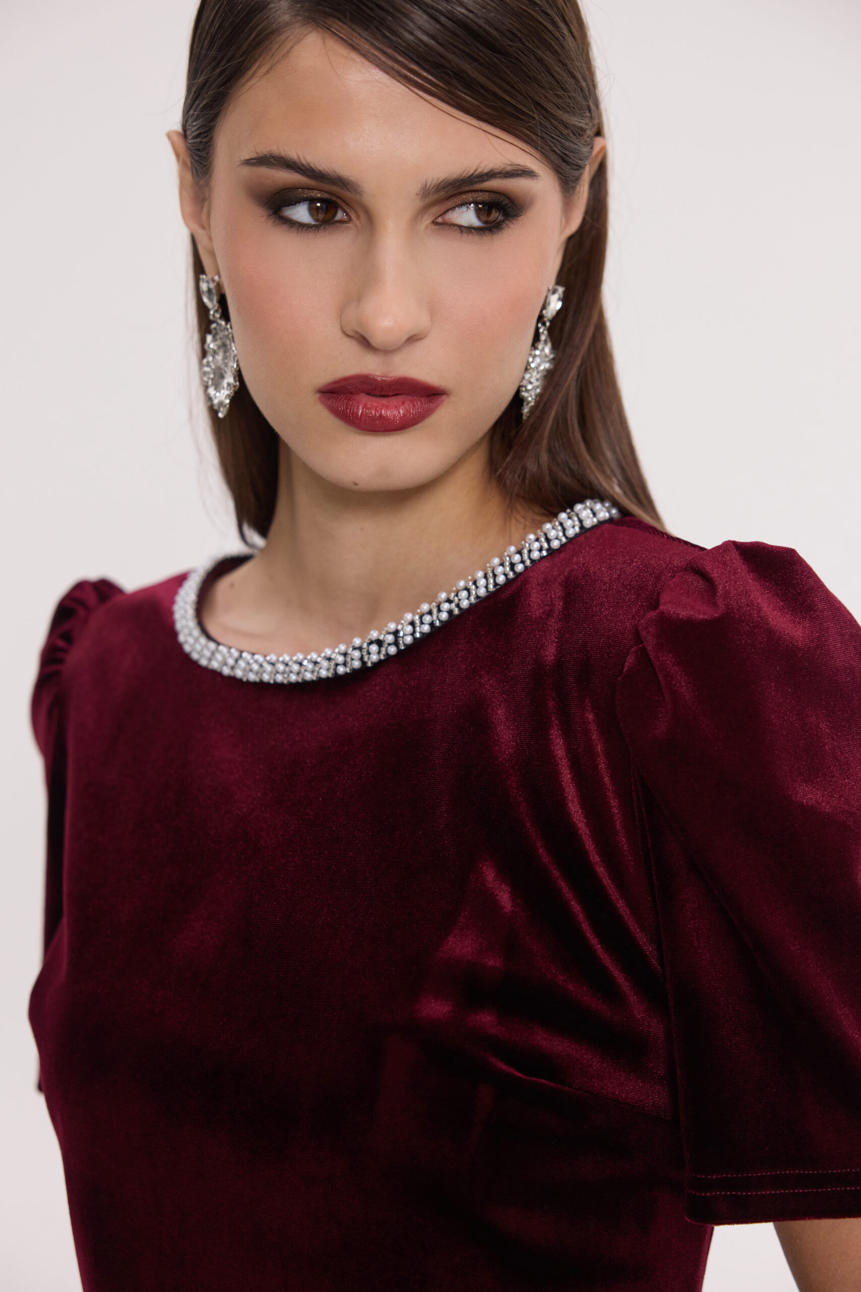 Φόρεμα velvet μακρυμάνικο με αγκράφα