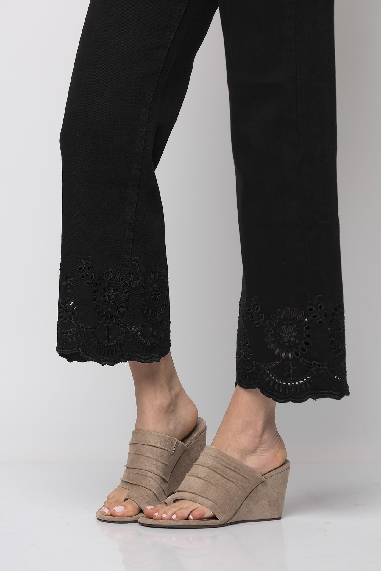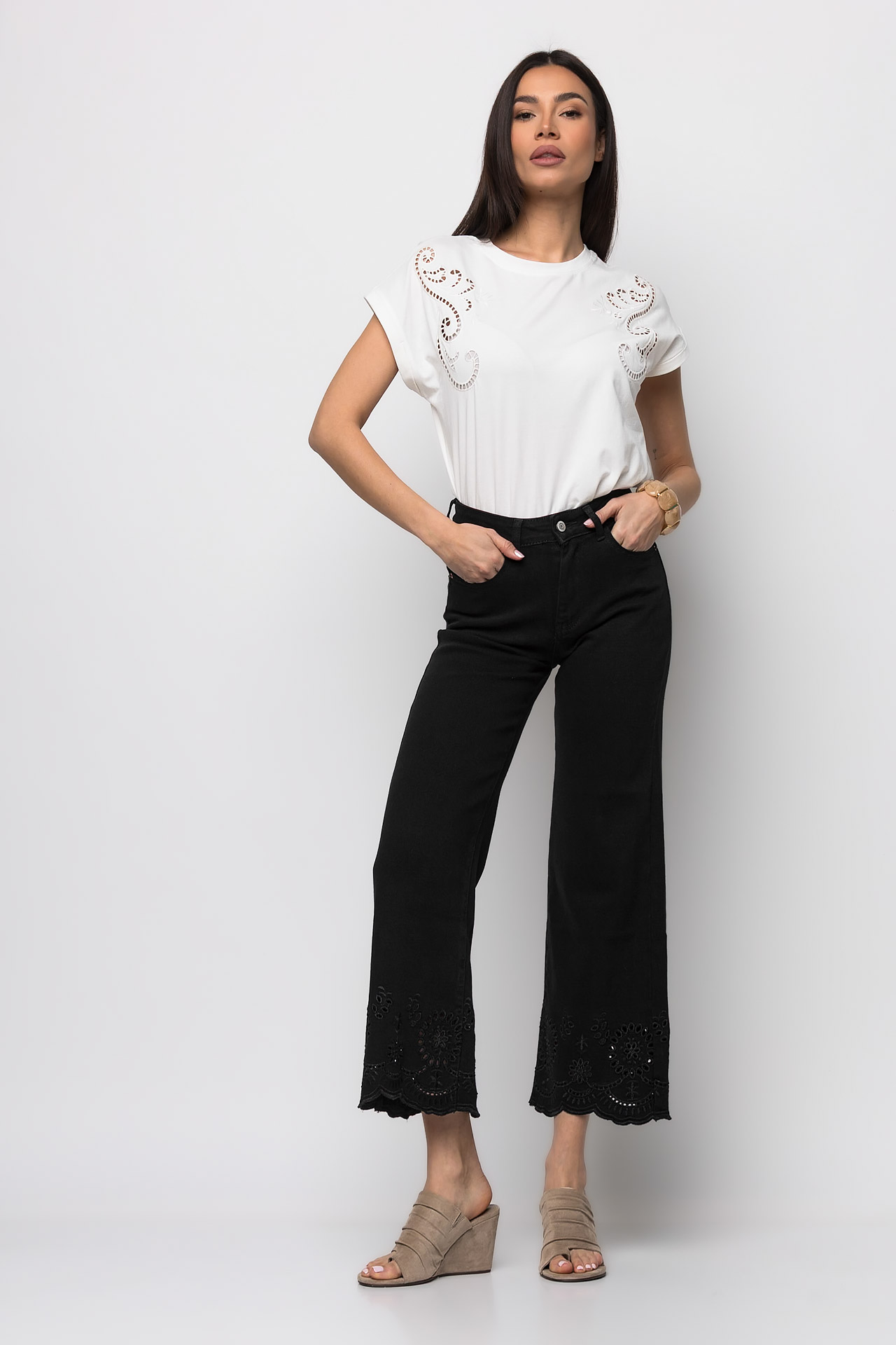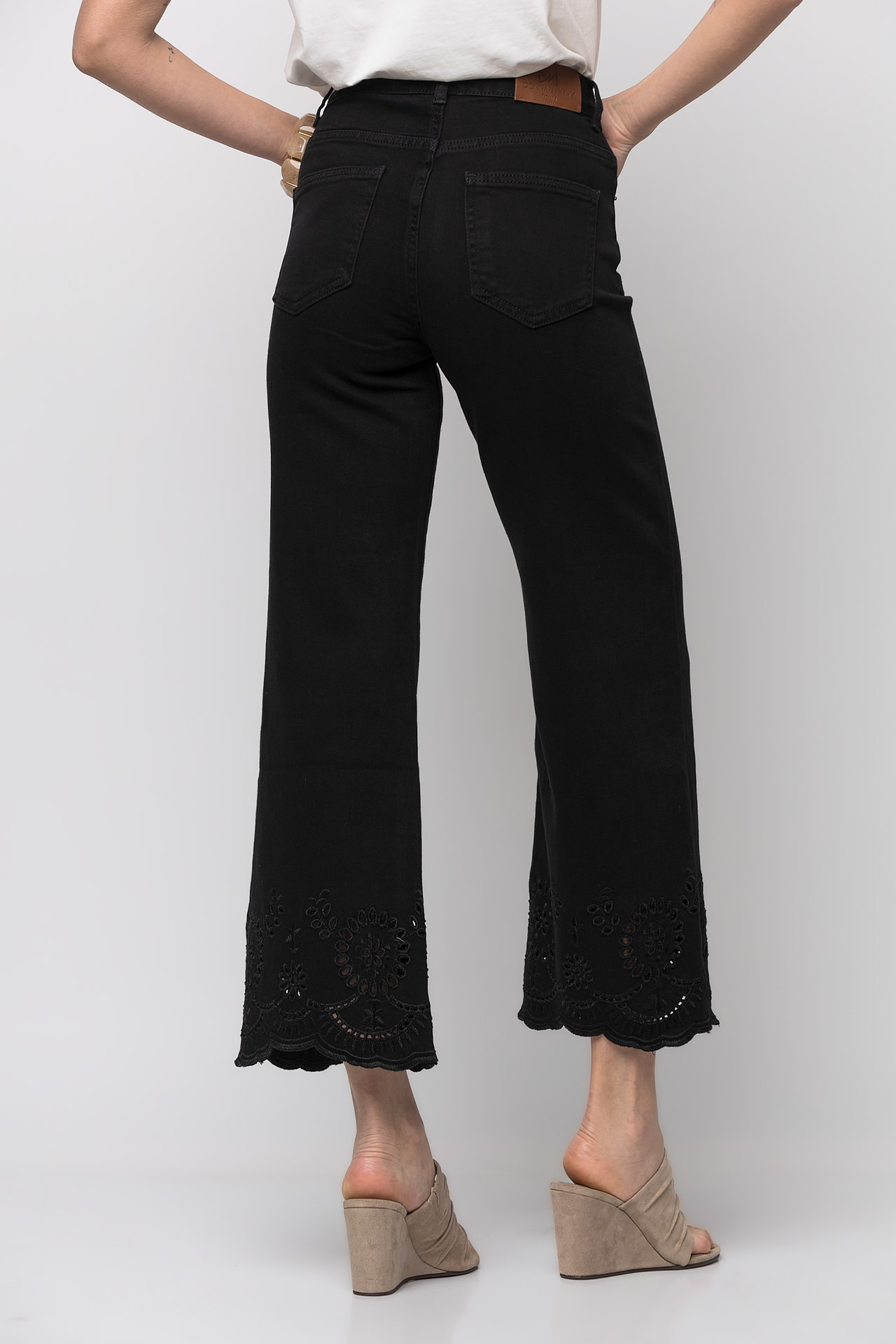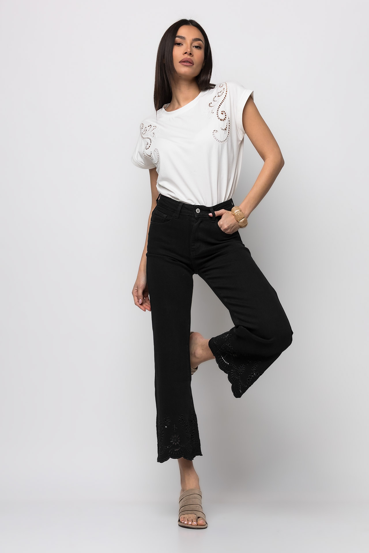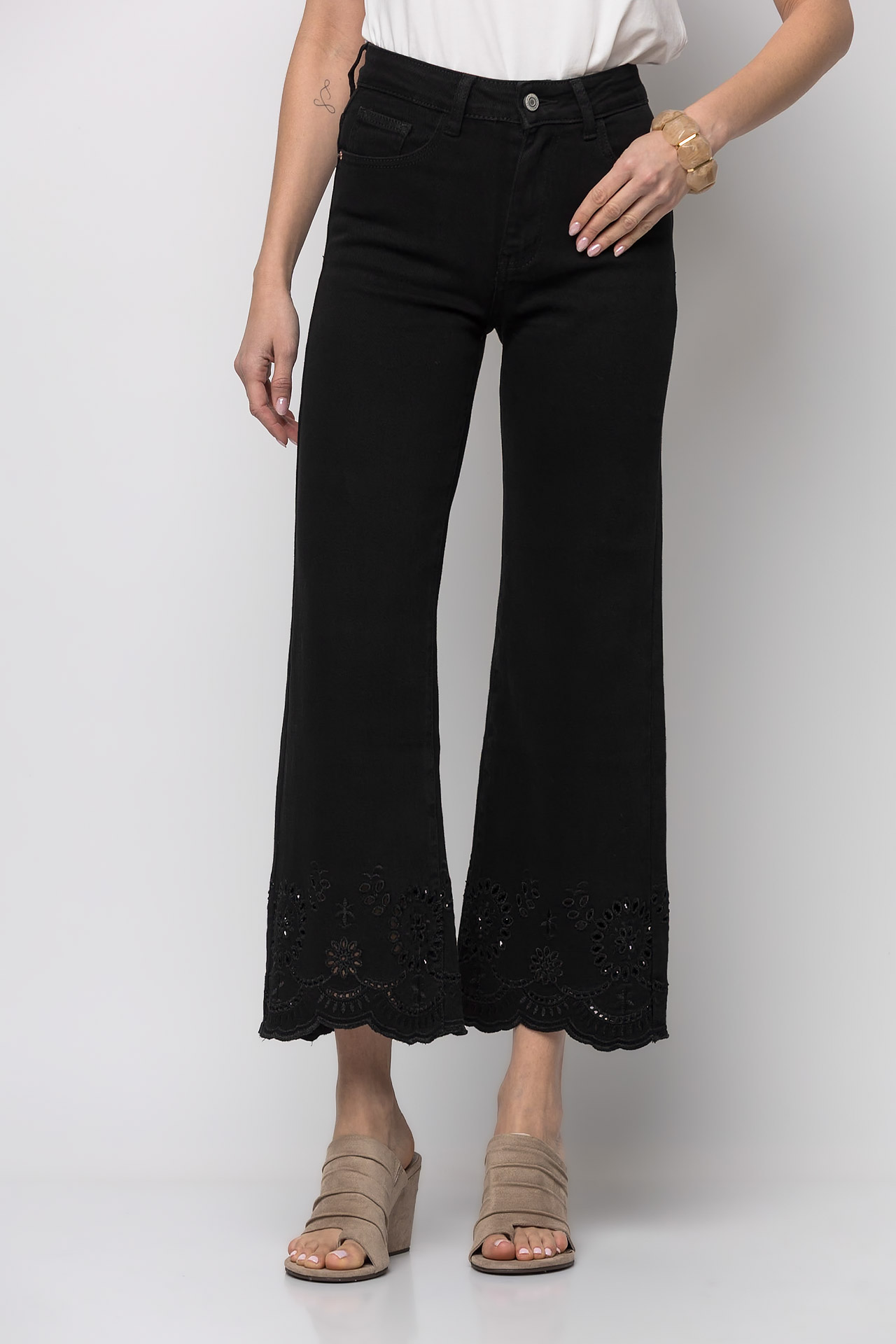 Jean crop με κέντημα μαύρο