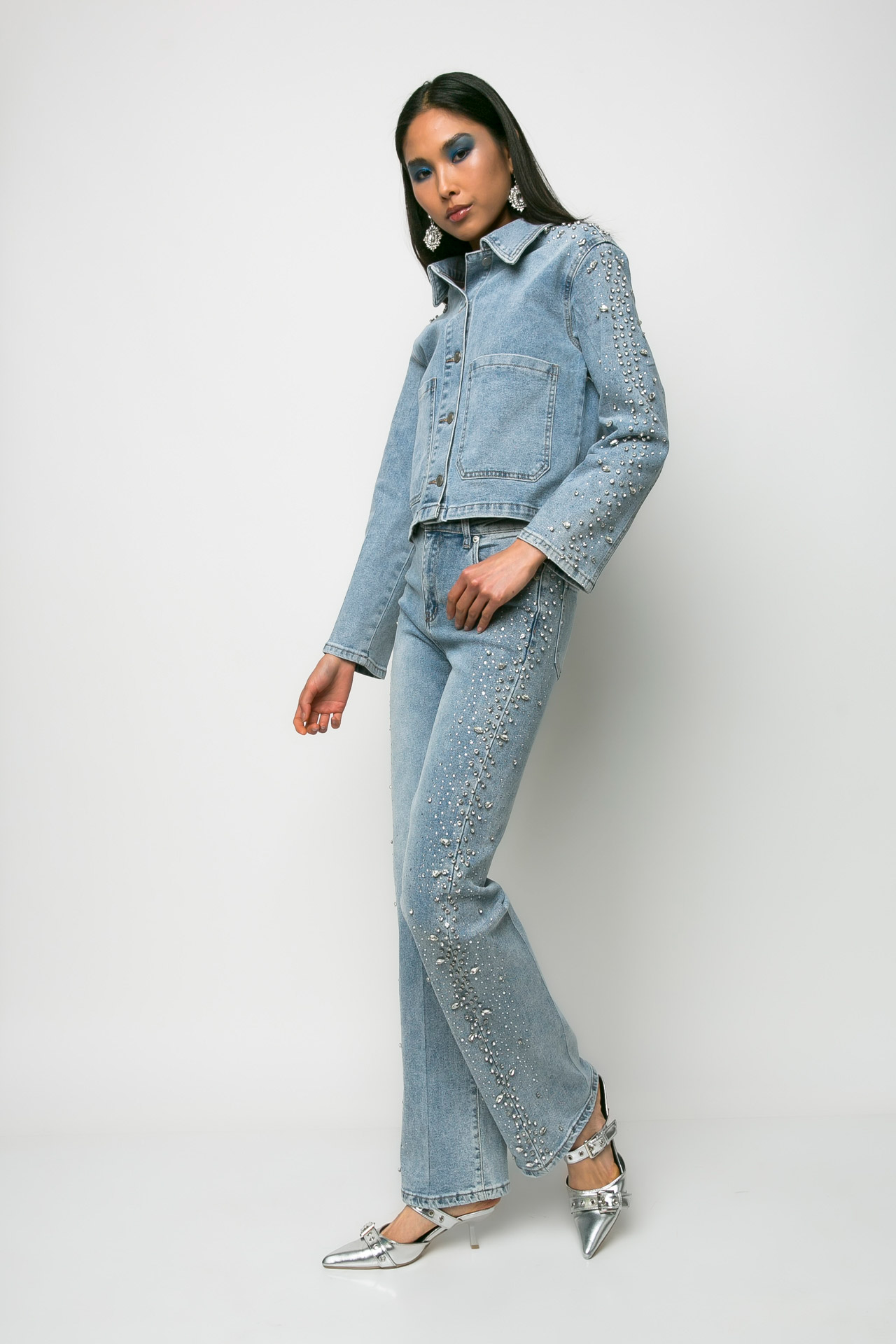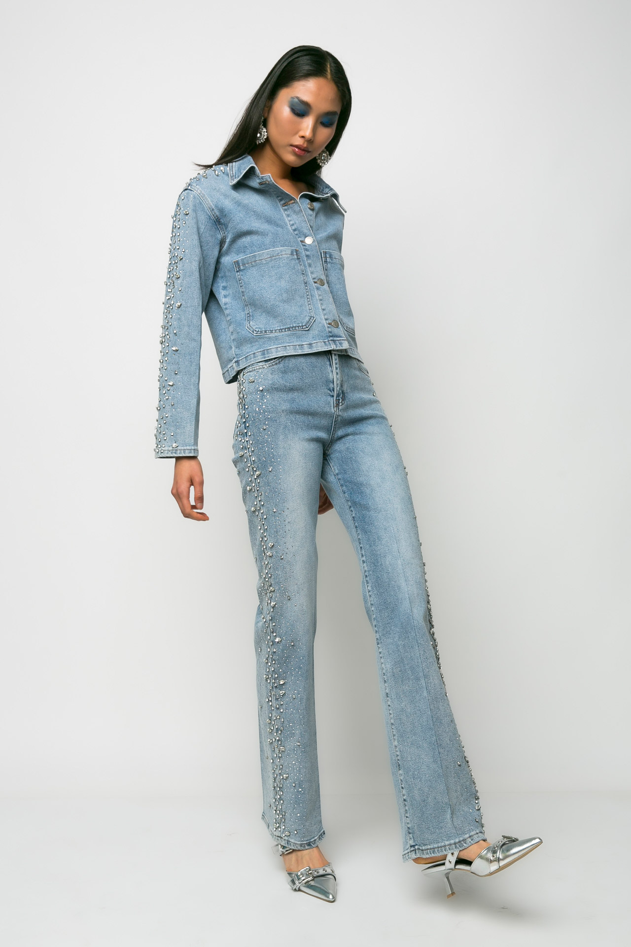 Jean jacket με διακοσμητικές πέτρες