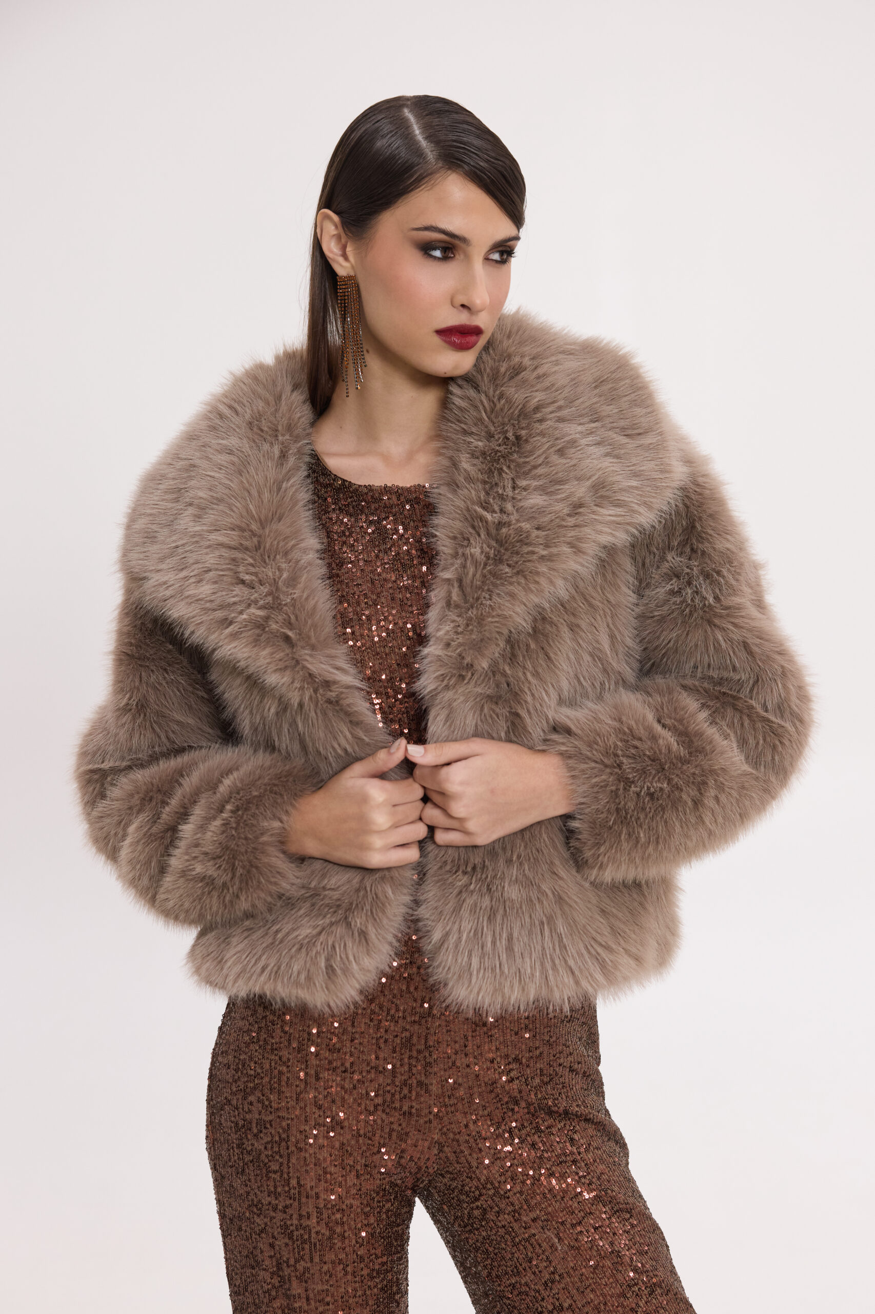 Κοντή faux γούνα με γιακά