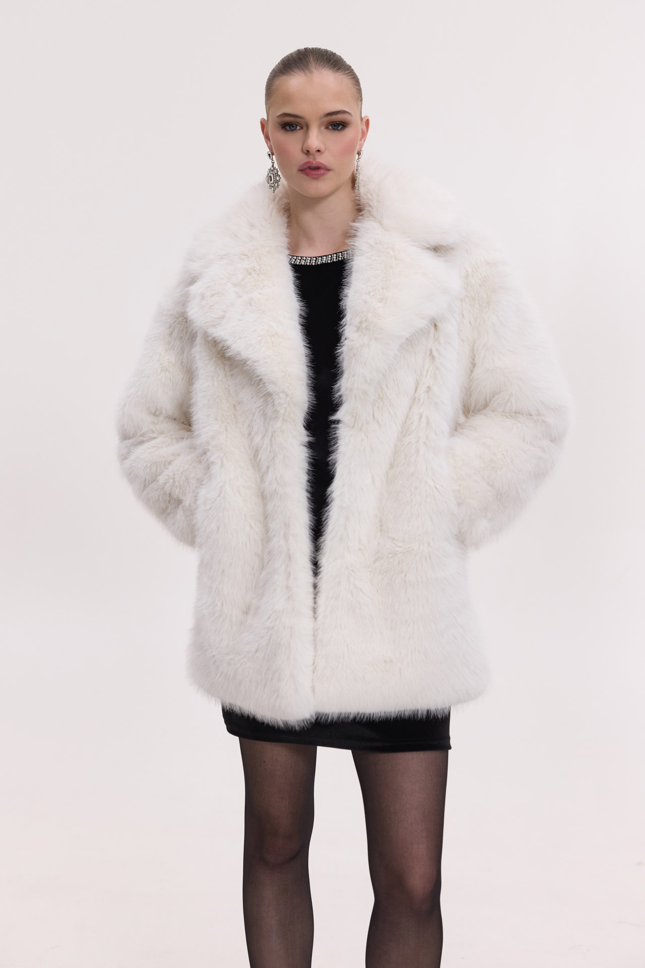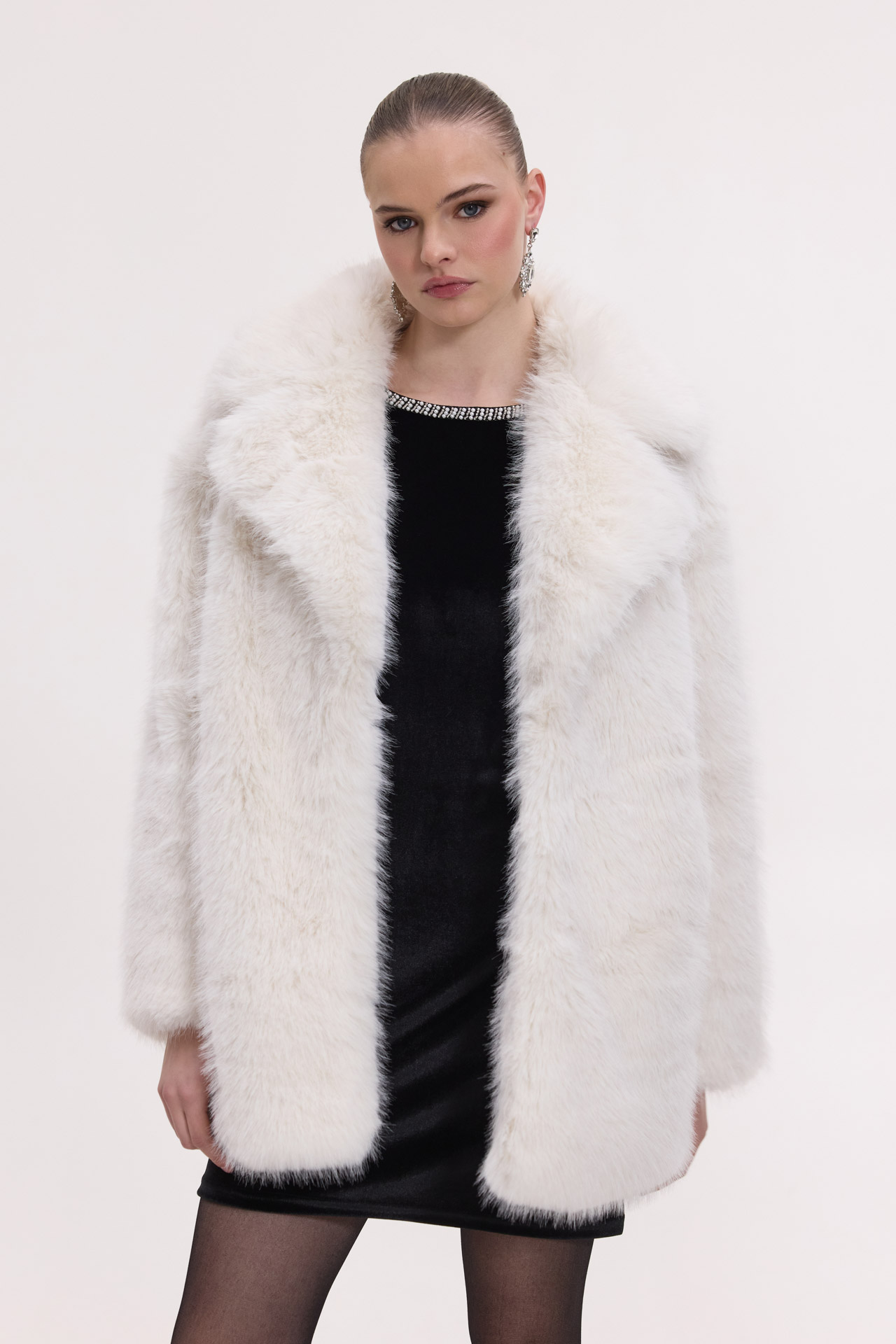 Midi συνθετική γούνα με γιακά