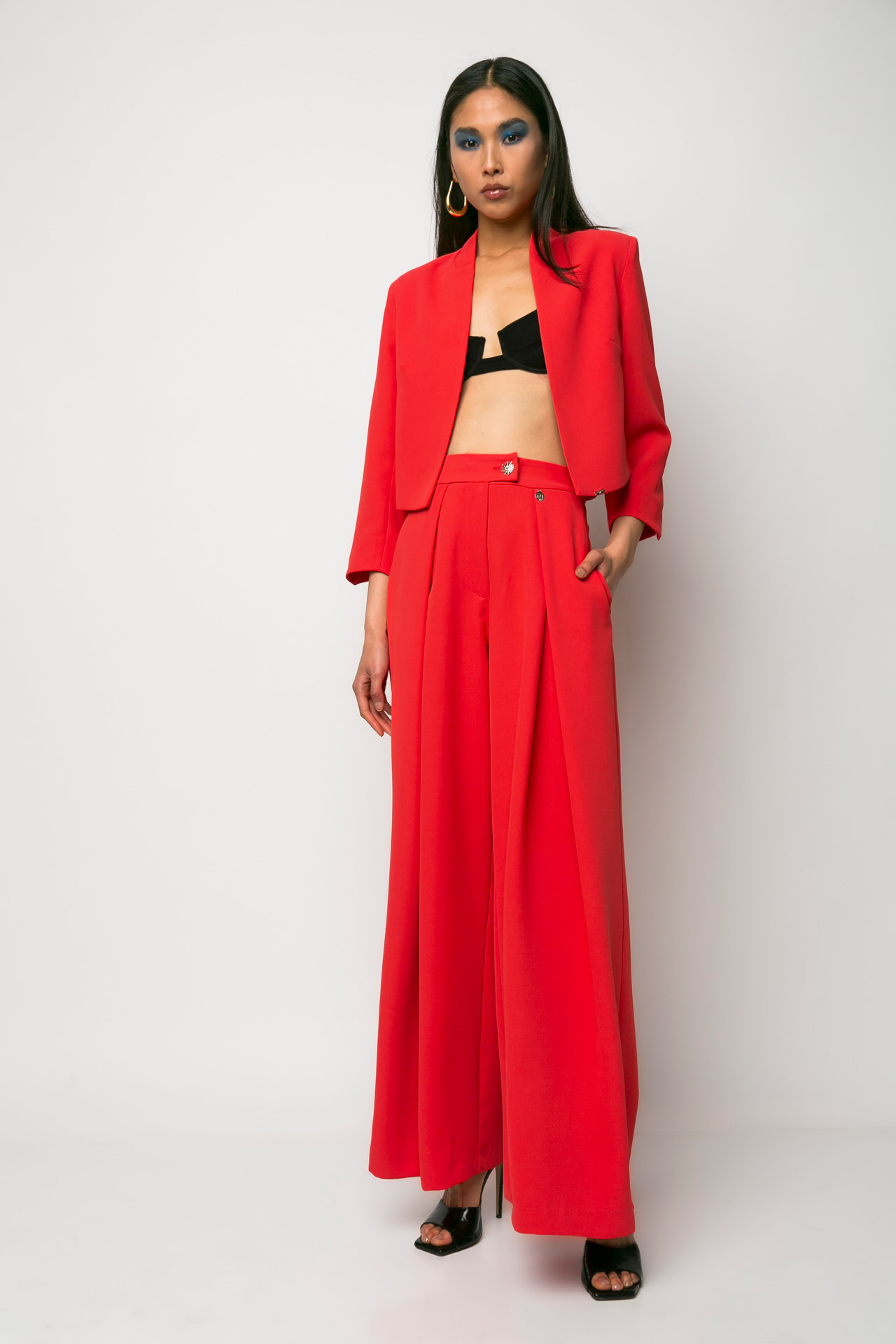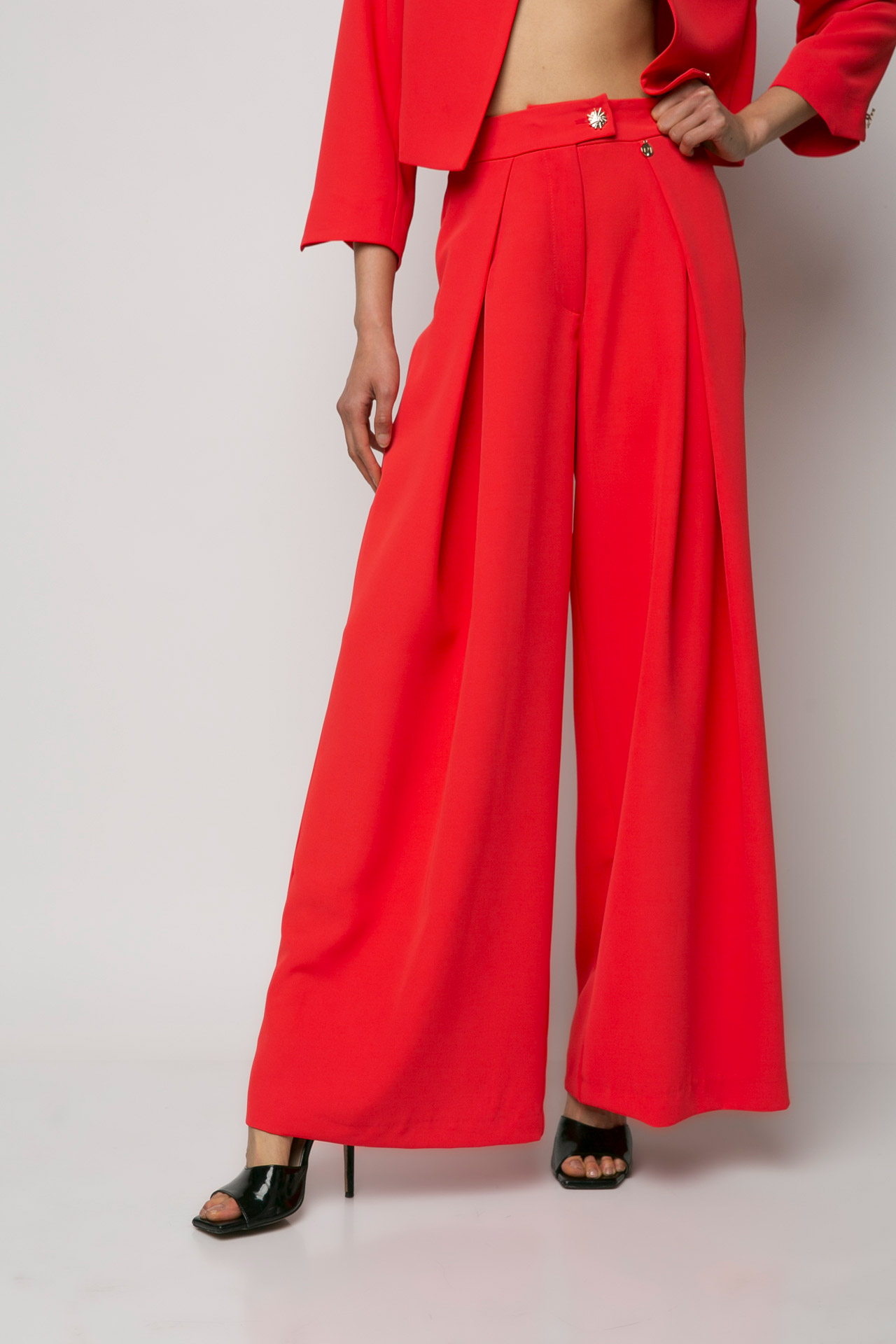 Παντελόνα με πιέτες κοραλί