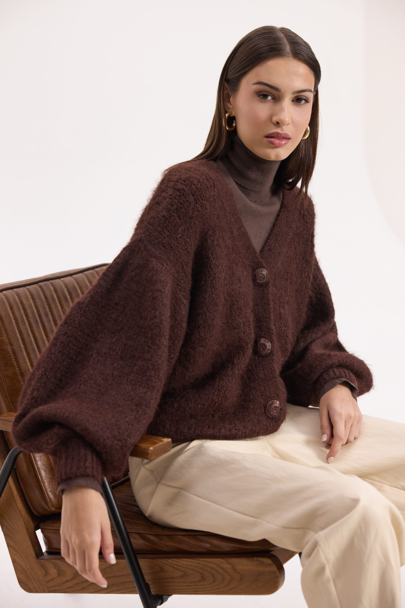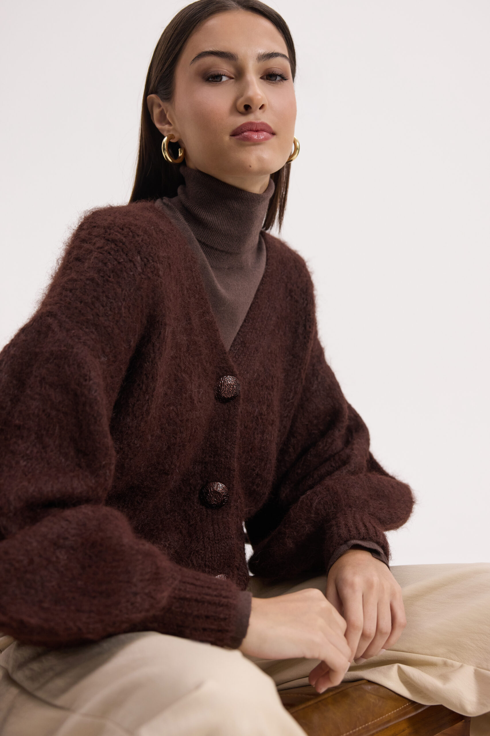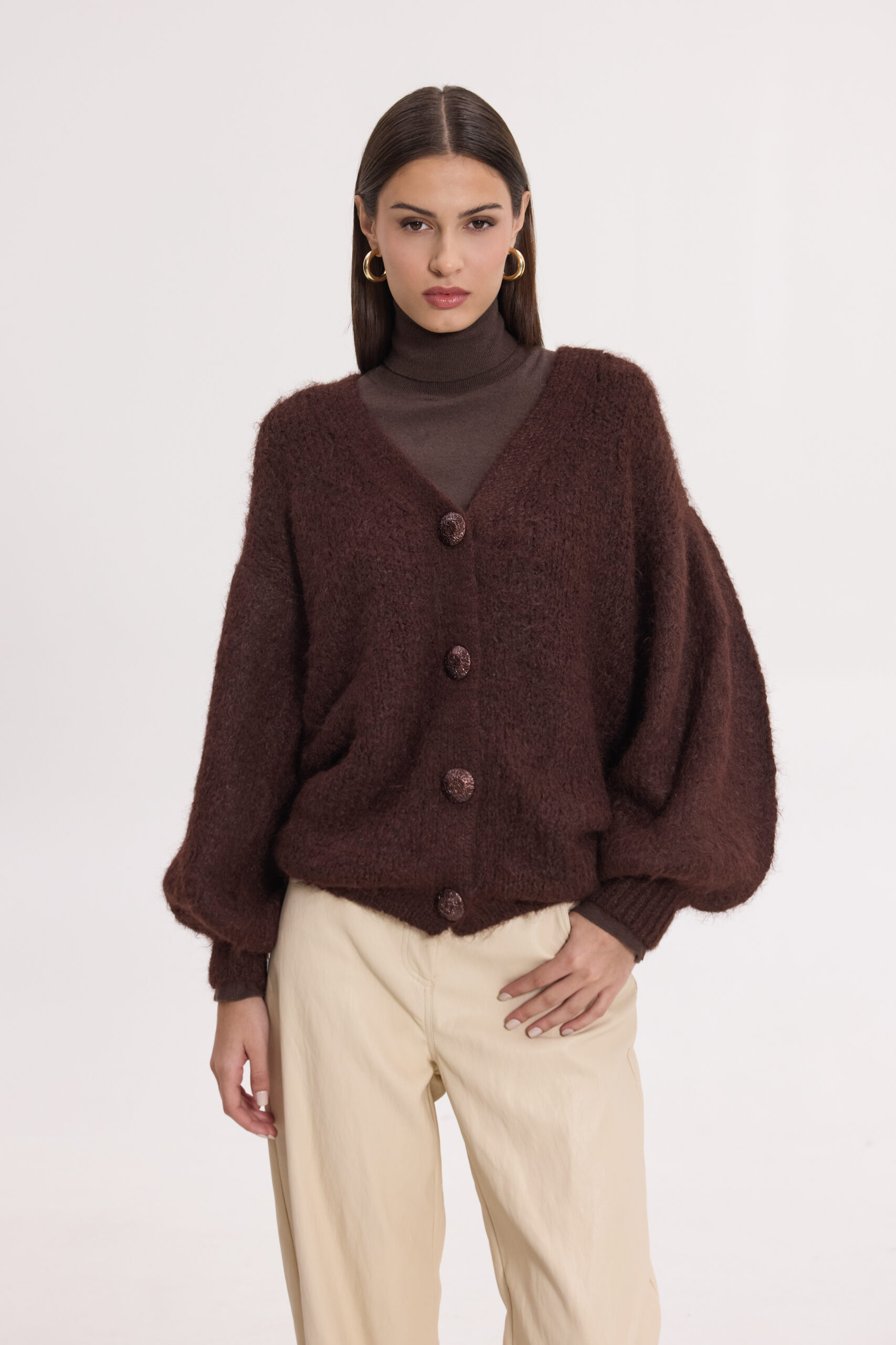 Ζακέτα πλεκτή με φουσκωτά μανίκια