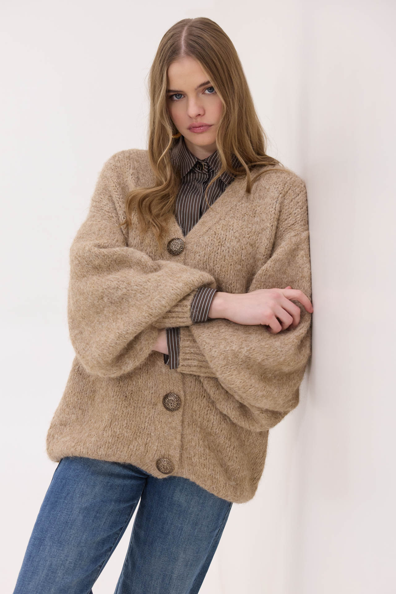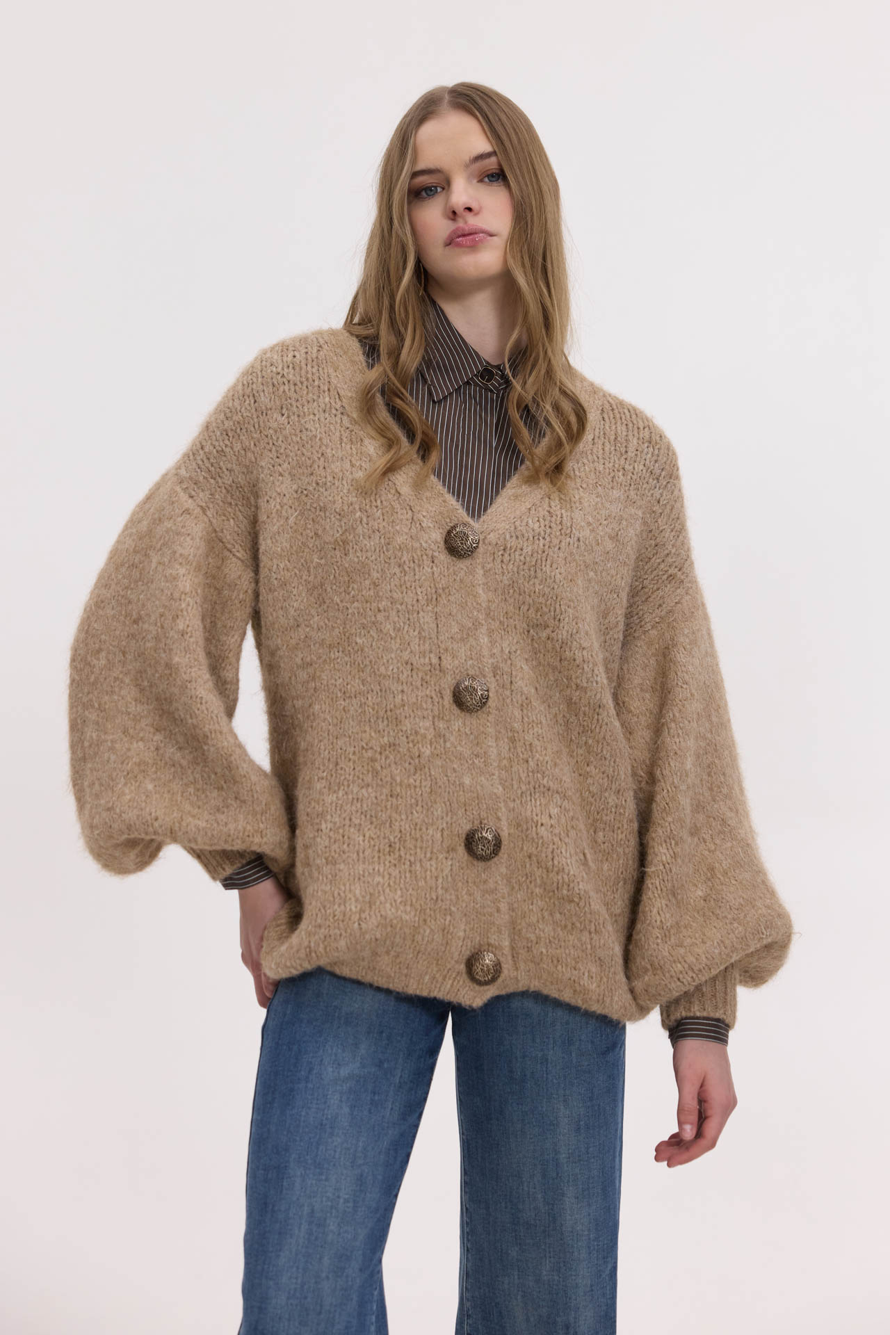 Ζακέτα πλεκτή με φουσκωτά μανίκια Original price was: 54,90 €.Η τρέχουσα τιμή είναι: 27,50 €.