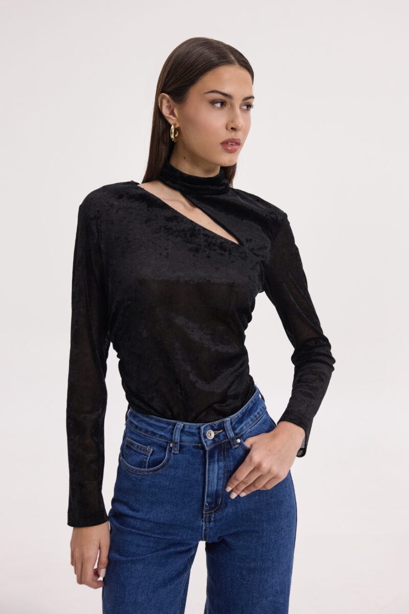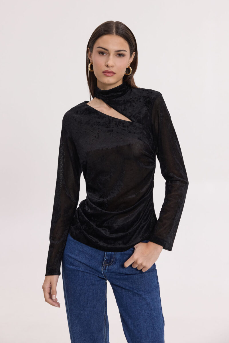 Μπλούζα πλεκτή με πιέτα και αγκράφα