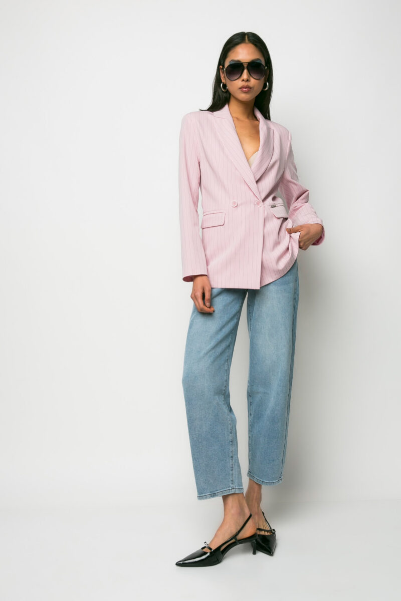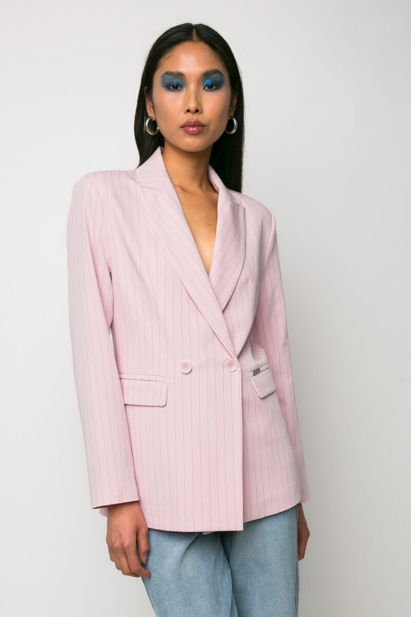 Σακάκι σταυρωτό ριγέ ροζ