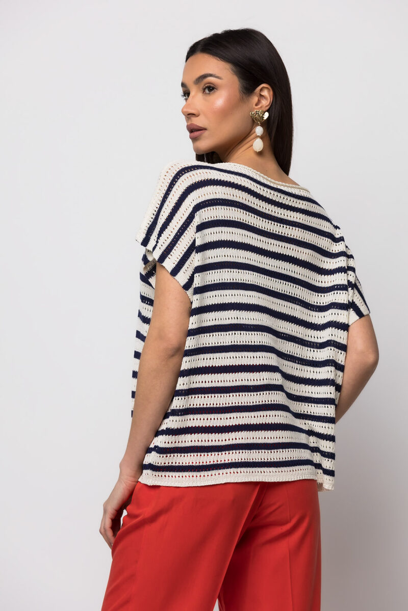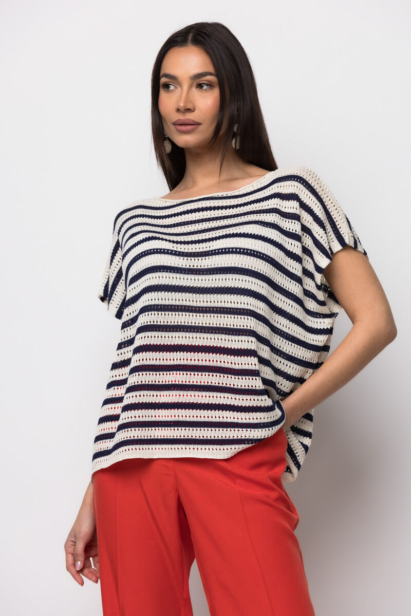 Μπλούζα πλεκτή κοντομάνικη μπλε