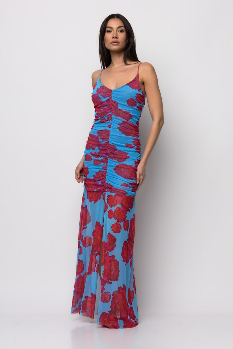 Maxi φόρεμα με τούλι σιέλ