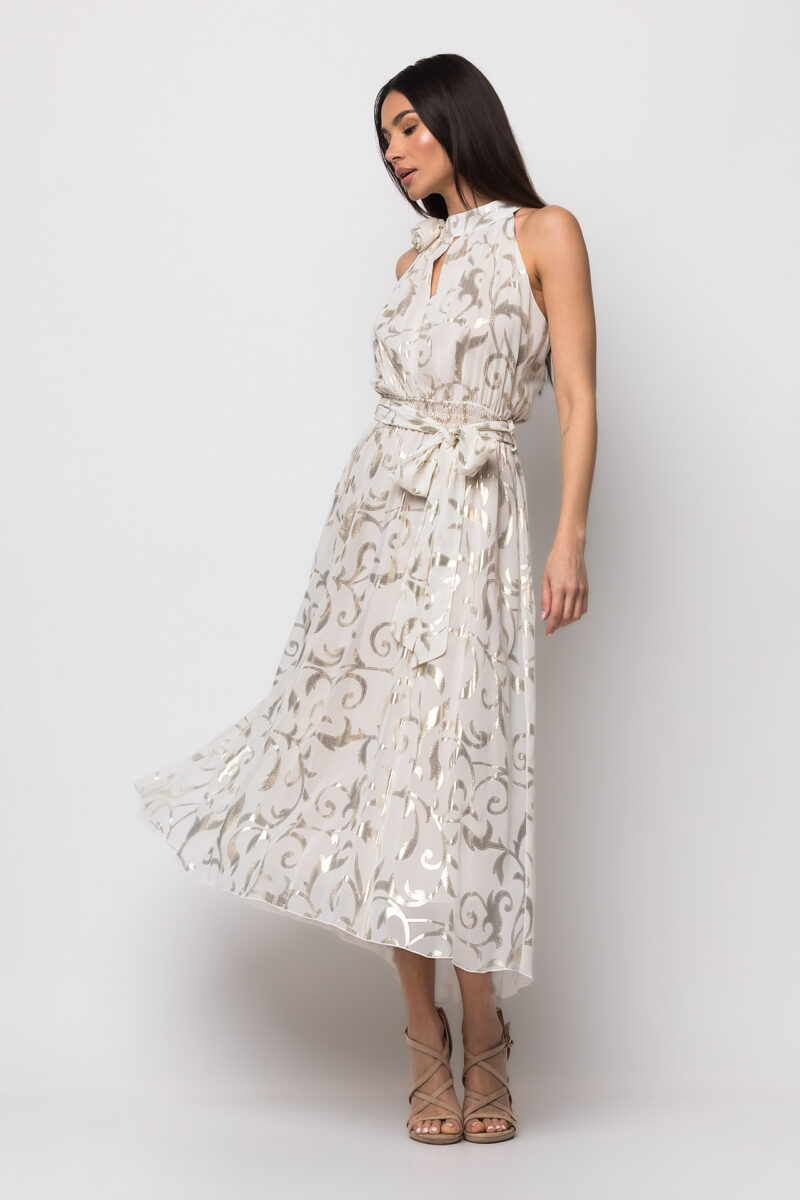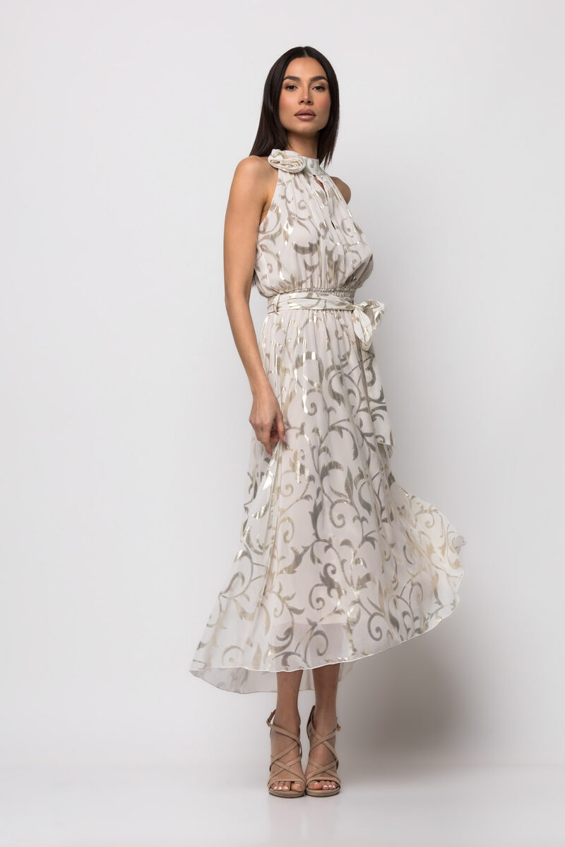 Φόρεμα midi με παρτούς ώμους εκρού