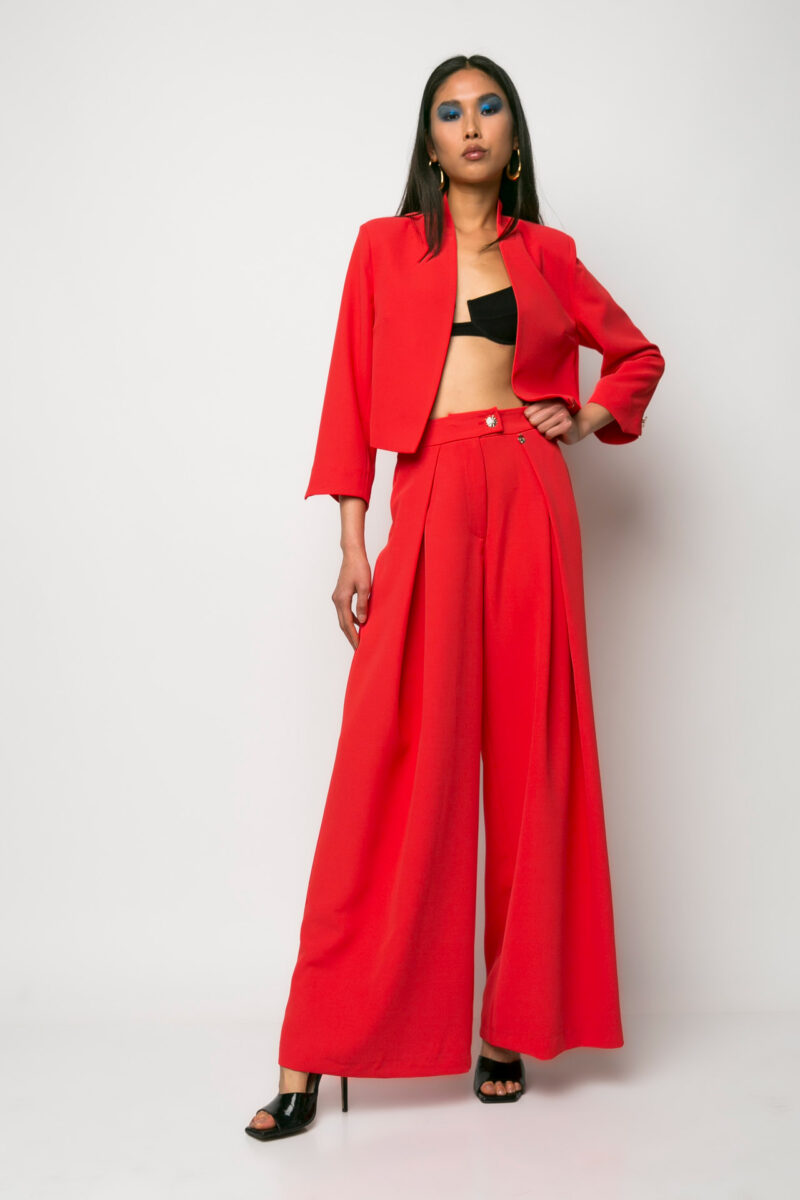 Παντελόνα με πιέτες κοραλί