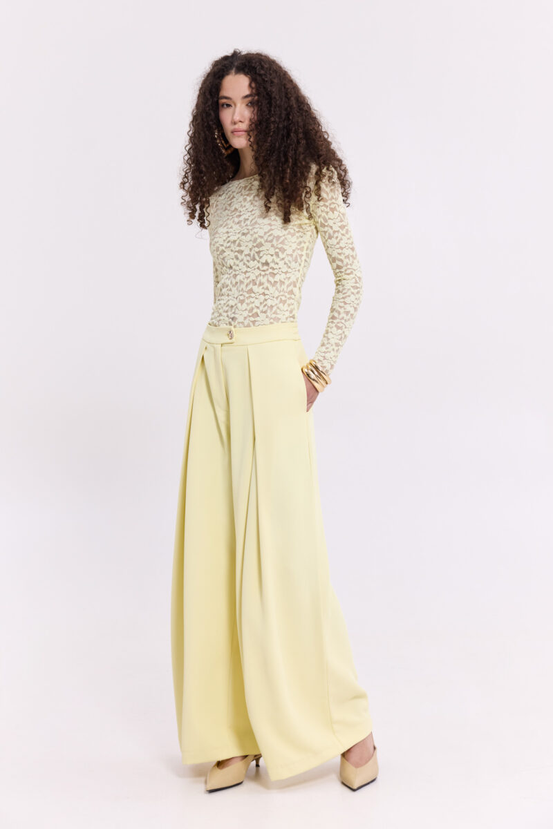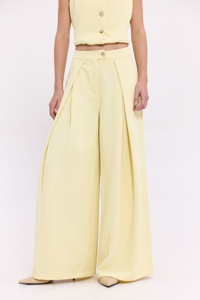 Παντελόνα με πιέτες κίτρινο