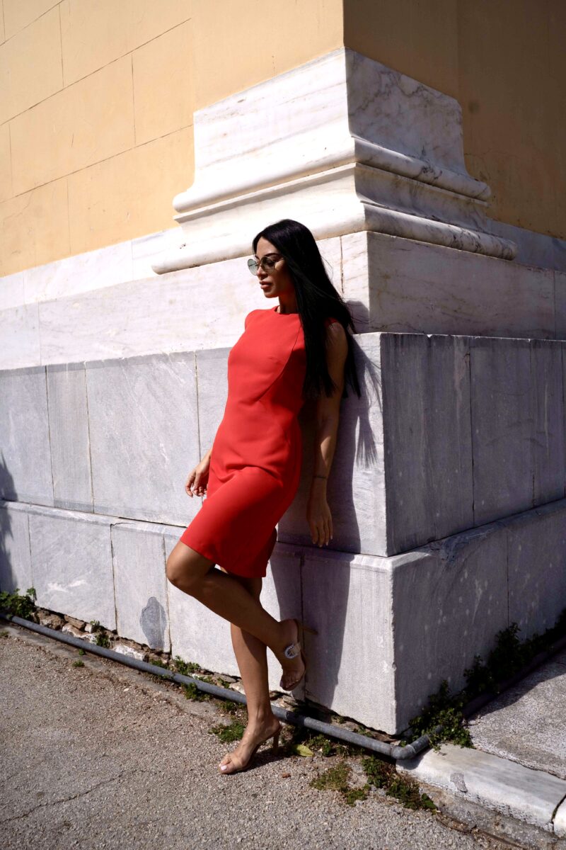Φόρεμα αμάνικο pencil κοραλί