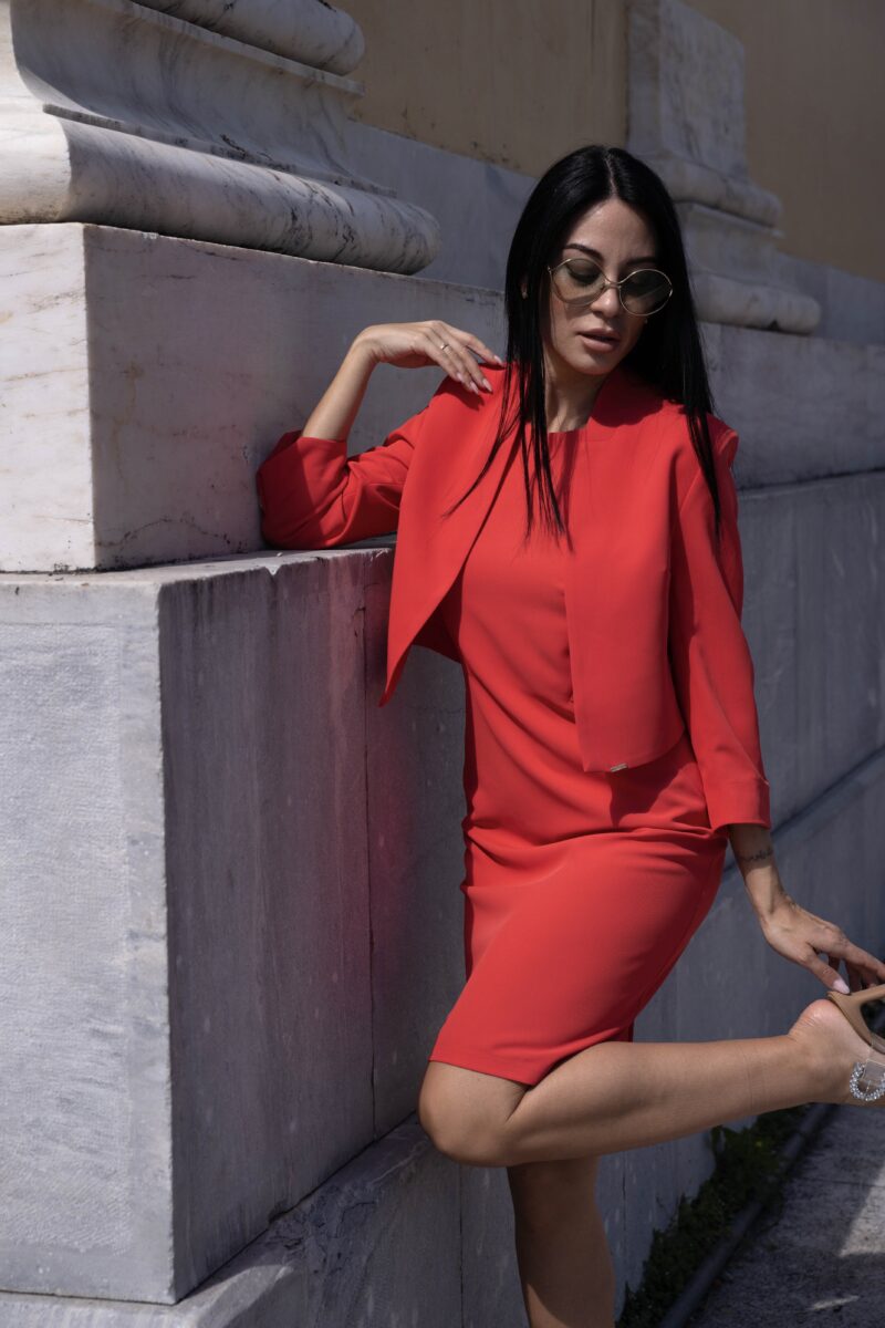 Κοντό σακάκι κρεπ κοραλί